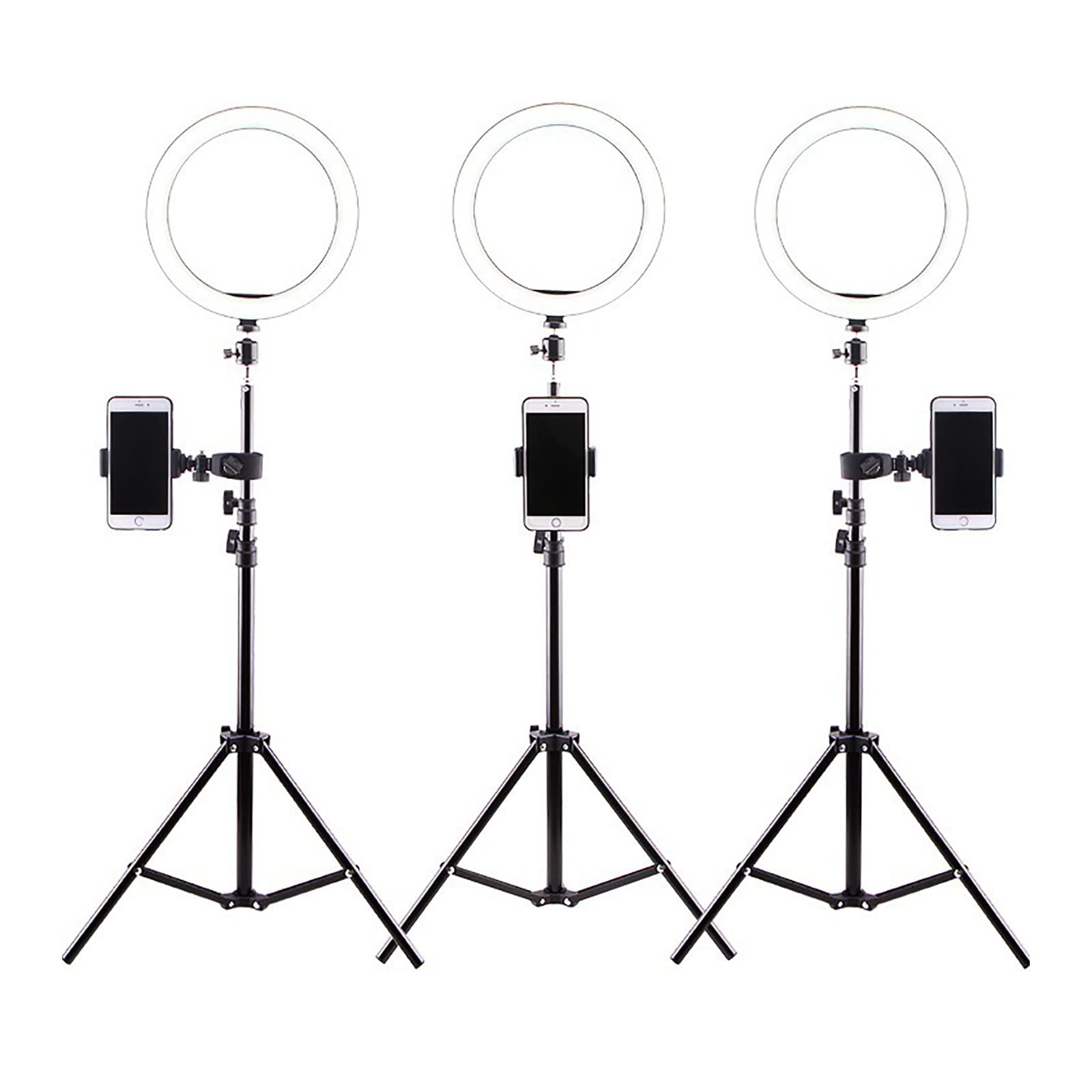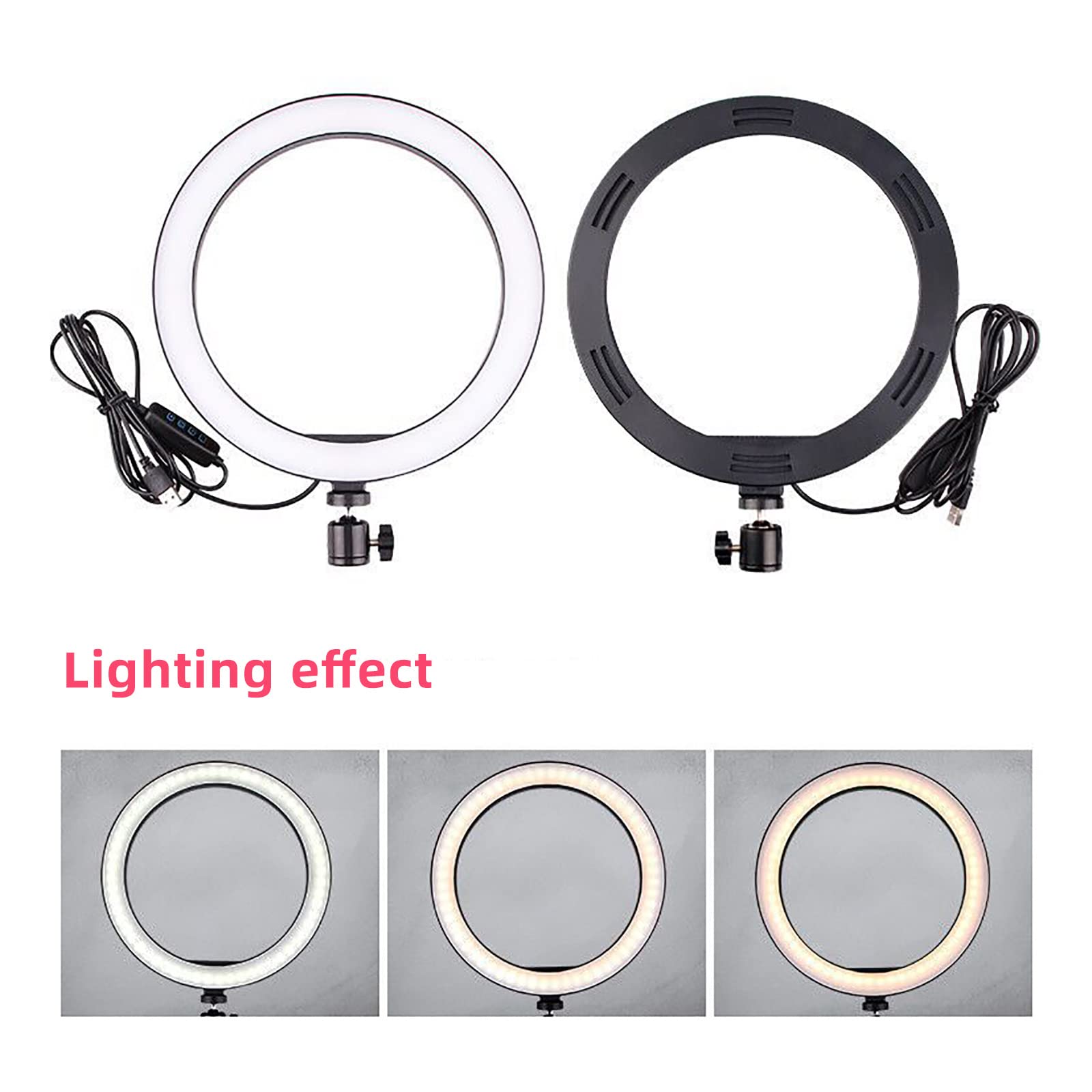 10 Inch Led Selfie Light Height Adjustable Protable Ring Lamp Tricolor Dimming 10-Level Brightness Professional Beauty Ringlight 360 Degree Rotatable Illumination Angle